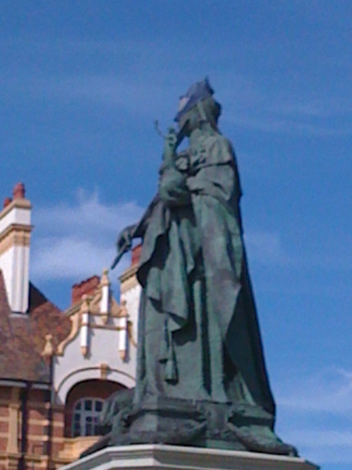 Talking of funny things...went for a last swim (for a while) and saw someone had put a pair of trunks on Queen Victoria's head. Sadly... I was amused.